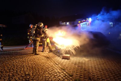 Die Feuerwehren Vorderweissenbach (UU) und Piberschlag (RO) kooperierten bei der Bergung von Sauerstoffflaschen und Fahrzeugen.