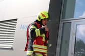 Bereits bei der ersten Erkundung stellte sich heraus, dass im Bereich der Montagehalle ein Brand ausgebrochen war. Aufgrund der Lage erfolgte umgehend die Auslösung der Alarmstufe 2 mit dem Stichwort "Brand Industrie".