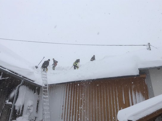 Bei manchen Objekten befand sich schon eine besorgniserregende Menge an Schnee auf den Dächern und so wurden diese in arbeitsintensiven Stunden von den Kameradinnen und Kameraden von der Schneelast befreit.
