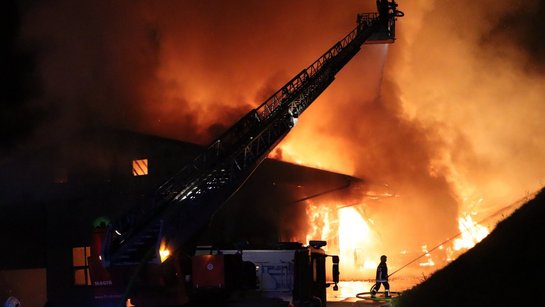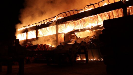 Bereits bei der Anfahrt war von weitem ein Feuerschein ersichtlich und es wurde umgehend die Alarmstufe 2 und in weiterer Folge die Alarmstufe 3 ausgelöst. Aktuell stehen 13 Feuerwehren mit ca. 180 Kameraden im Einsatz. Eine Maschinenhalle steht in Vollbrand. Die Atemschutztrupps konnten ein Übergreifen auf die angrenzenden Gebäude verhindern. Der Brand ist so weit unter Kontrolle, eine Brandursache ist aktuell noch nicht bekannt.