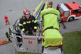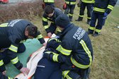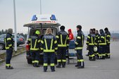 Weitere Schwerpunkte bildeten die Rettung eingeklemmter Personen nach Verkehrsunfällen unter Einsatz von hydraulischem Rettungsgerät sowie die Versorgung mehrerer verletzter Personen nach einem simulierten Unfall in einem Batterielager.