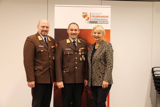 Bezirkshauptfrau Dr.in Wilbirg Mitterlehner und Bezirks-Feuerwehrkommandant OBR Sepp Bröderbauer gratulierten den wieder gewählten Abschnitts-Feuerwehrkommandanten. Dieses „Ehrenamt“ ist eine ehrenvolle, wichtige und verantwortungsvolle Aufgabe für die Menschen im Bezirk Rohrbach.